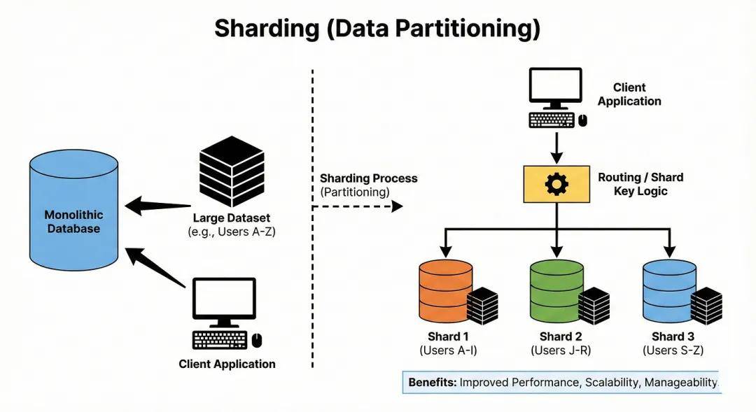 分片将数据分散存储在多台机器上,每台机器保存一部分数据。常见的分片策略包括基于范围的分片、基于哈希的分片和基于目录的分片。