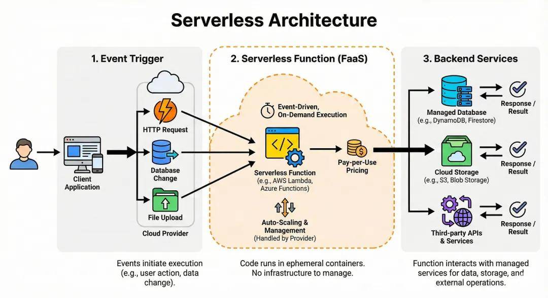 无服务器架构能让你在云端运行小型函数,而无需直接管理服务器。您只需在代码运行时付费,平台会为您处理扩展和基础设施。