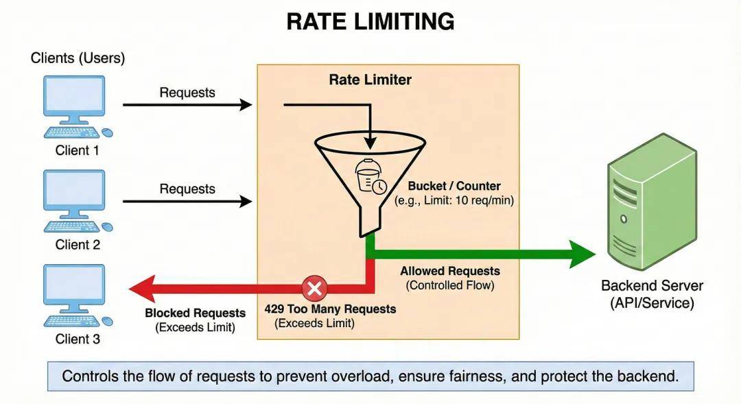 速率限制控制用户、IP 地址或 API 密钥在给定时间窗口内可以发出的请求数量。它可以保护您的系统免受滥用、意外流量高峰和失控循环的影响。