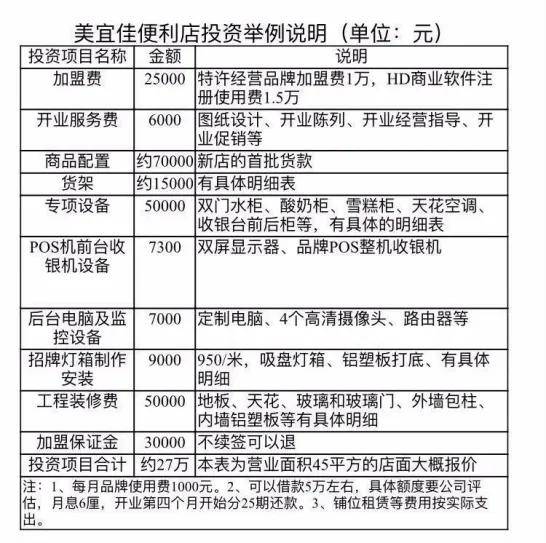 而美宜佳的加盟模式更是精准击中了市场的核心痛点。总投资约 30 - 35 万元,其中仅包含 2.5 万元特许加盟费、3 万元保证金,以及用于装修、设备、首批货款等的费用,将初始成本压缩到了极致。
