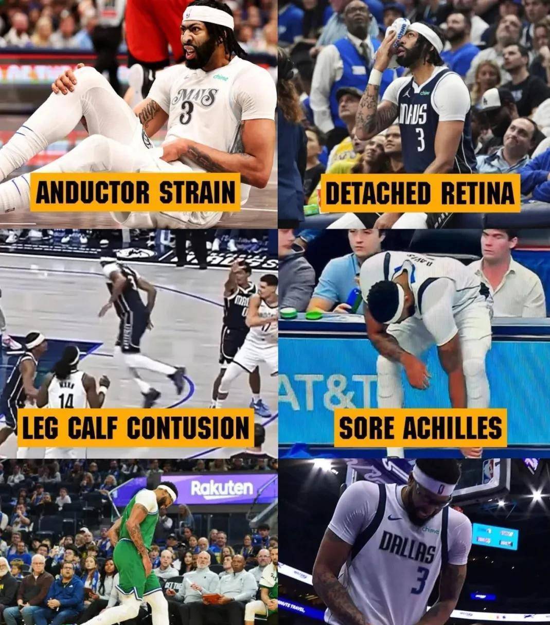 独行侠自己也懵了。他们从去年2月把浓眉从湖人弄过来,满打满算快一年了。这哥们儿一共就披挂上阵了29次。喏,这是有记录的,至少六种不同的伤病找上他。这赛季,打打停停,20场比赛他出战,19场他在板凳或者治疗室。场均31.3分钟,能拿20.4分、11.1个篮板、1.7个盖帽,看数据,还是全明星内线的底子。但你仔细看投篮命中率,三分球掉到了27%。最关键的是,他没法稳定地站在场上。