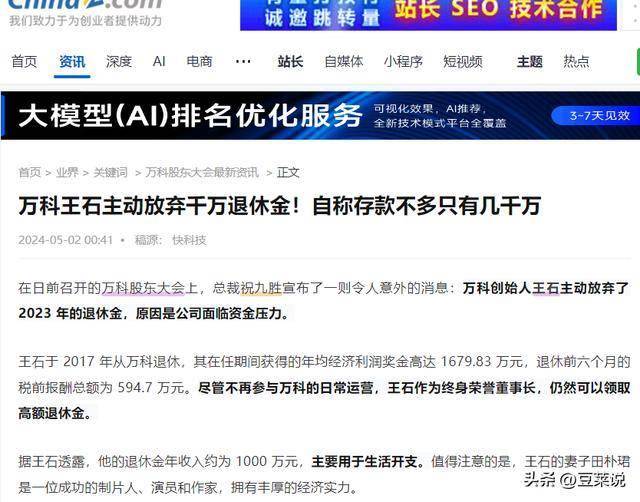 先说大家熟悉的王石,以前是万科的掌舵人,退休后本来能每年拿上千万退休金,日子过得十分滋润。